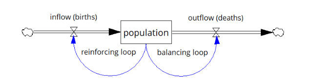 - Birth rates make up the reinforcing loop—as the population increases, so does the number of births, leading to potential exponential growth.